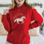 Silver Holiday Horse with snowflakes – beautiful equestrian hoodie for a horse lover!
