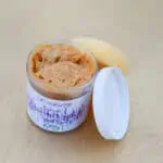 Saddle Butter made with shea butter, coconut oil, aloe vera, lanolin, and essential oil. Rub a small amount in to clean leather and polish off with a clean rag. Your leather will love this!