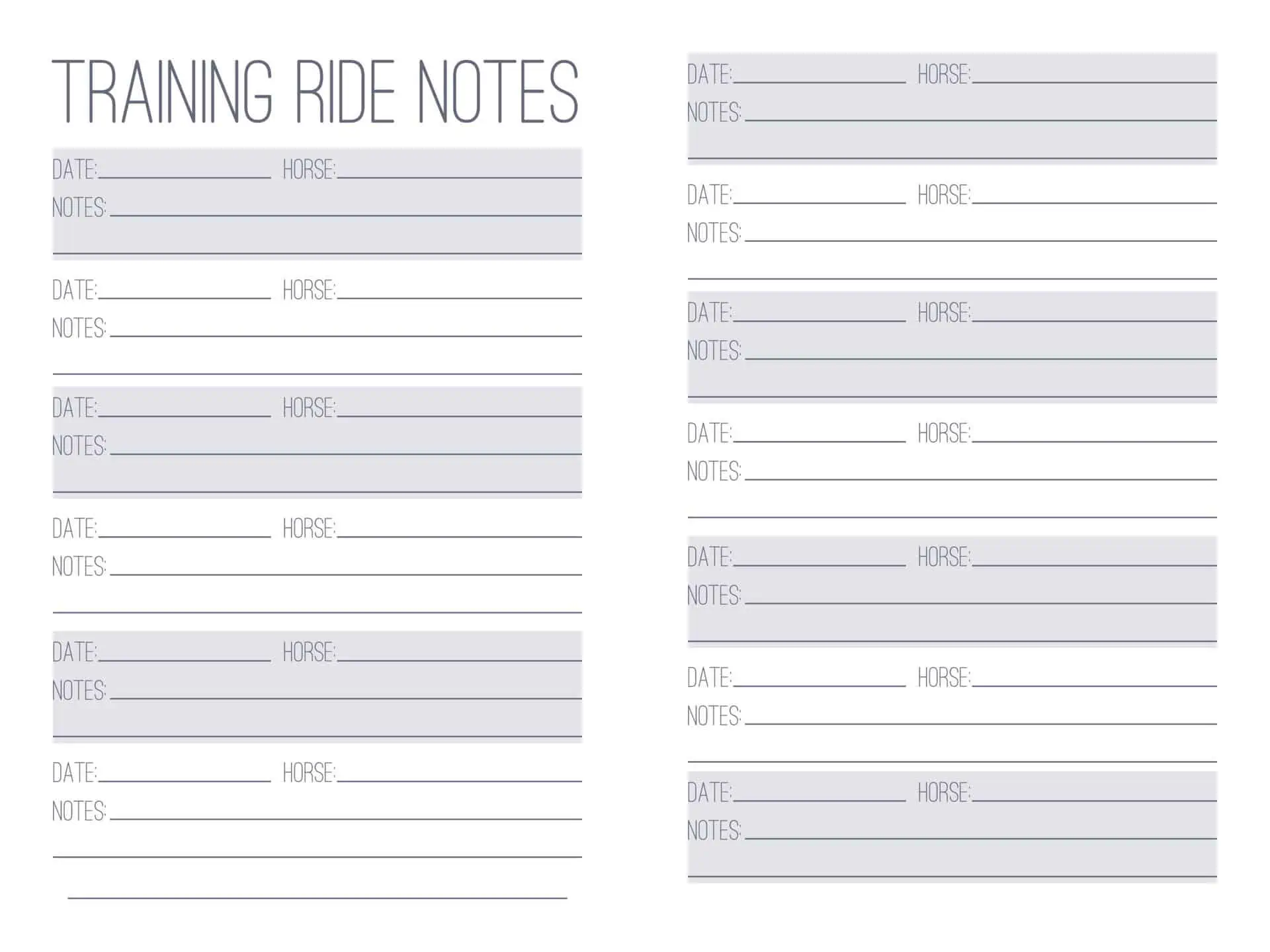 - Horse in Training Log (keep notes about horses, training plans, etc)