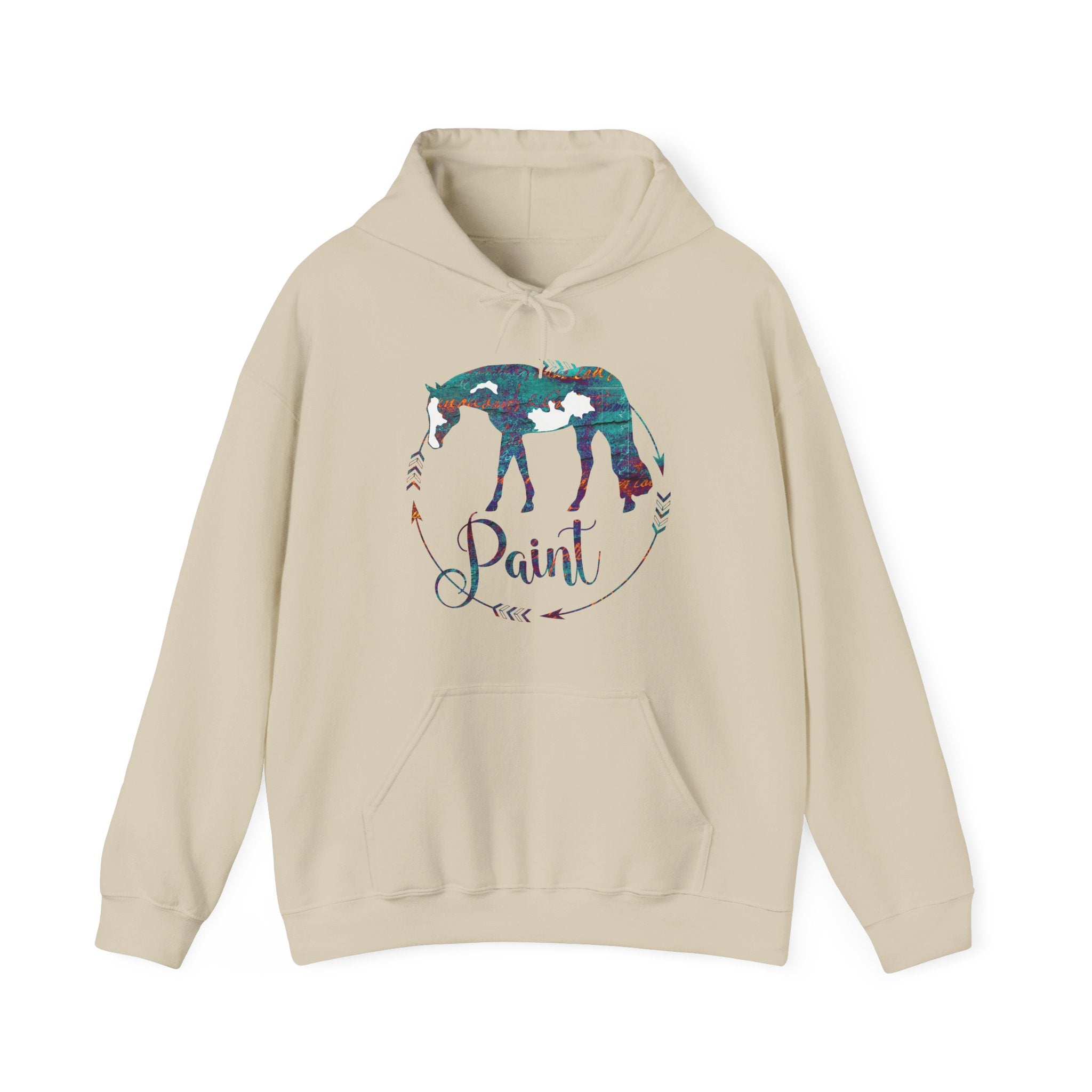 Soft, cozy, and designed for everyday barn life. This Gildan 18500 hoodie features a watercolor-style Paint horse silhouette framed in a delicate arrow wreath with hand-lettered script. The gentle, muted tones give it an artistic, relaxed feel perfect for chilly mornings, long show days, or just curling up at home.