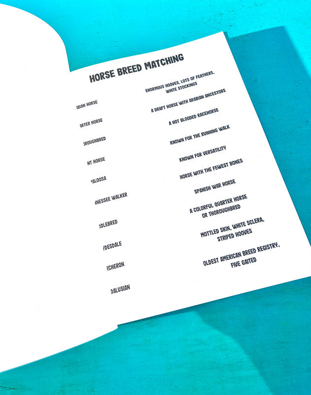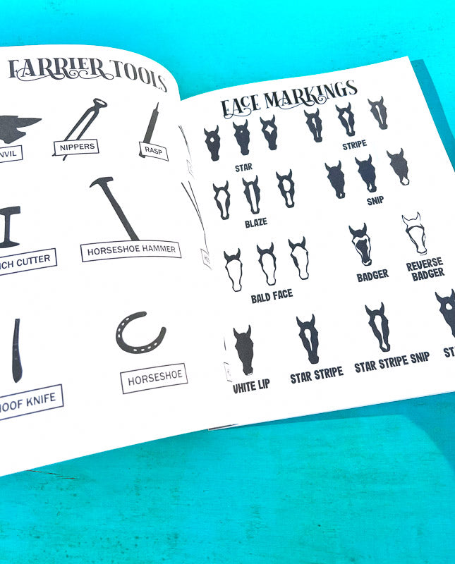 This book includes diagrams as well as worksheets with word banks to test your knowledge. In the back of this book, there are additional activities and games such as equestrian crosswords, word searches, and horse fact worksheets!