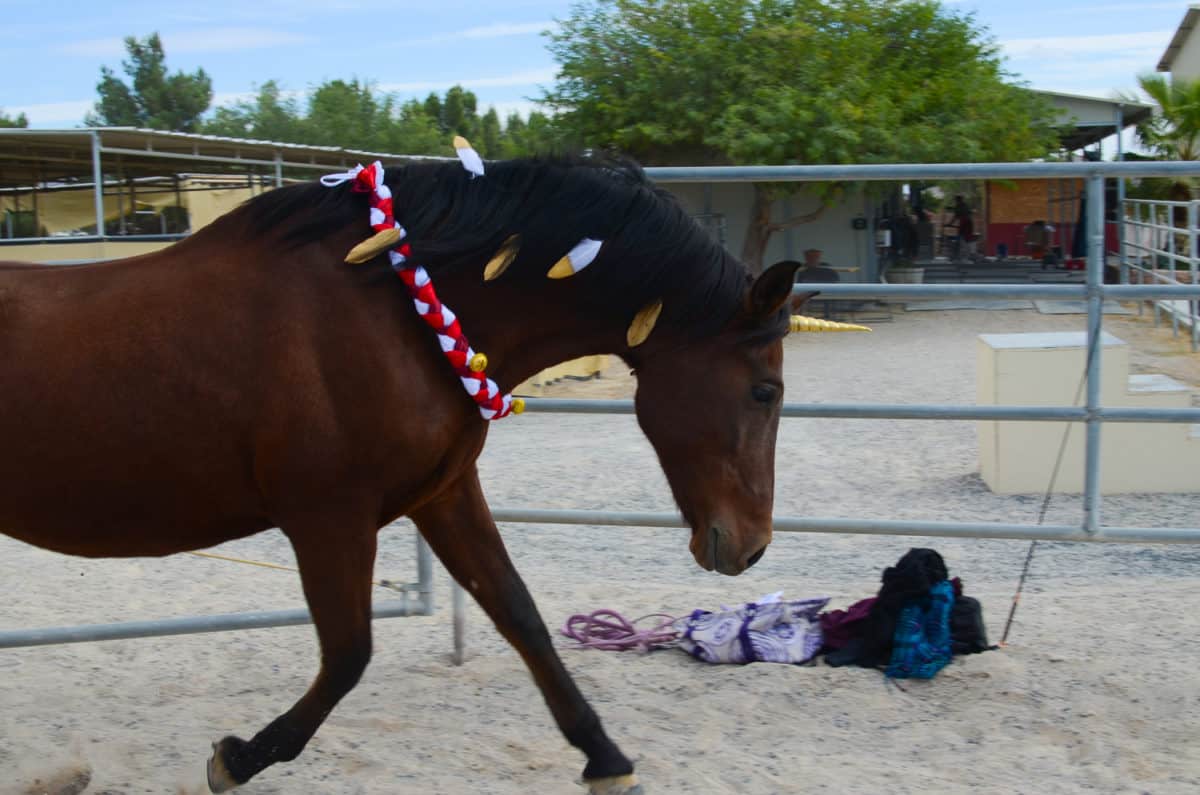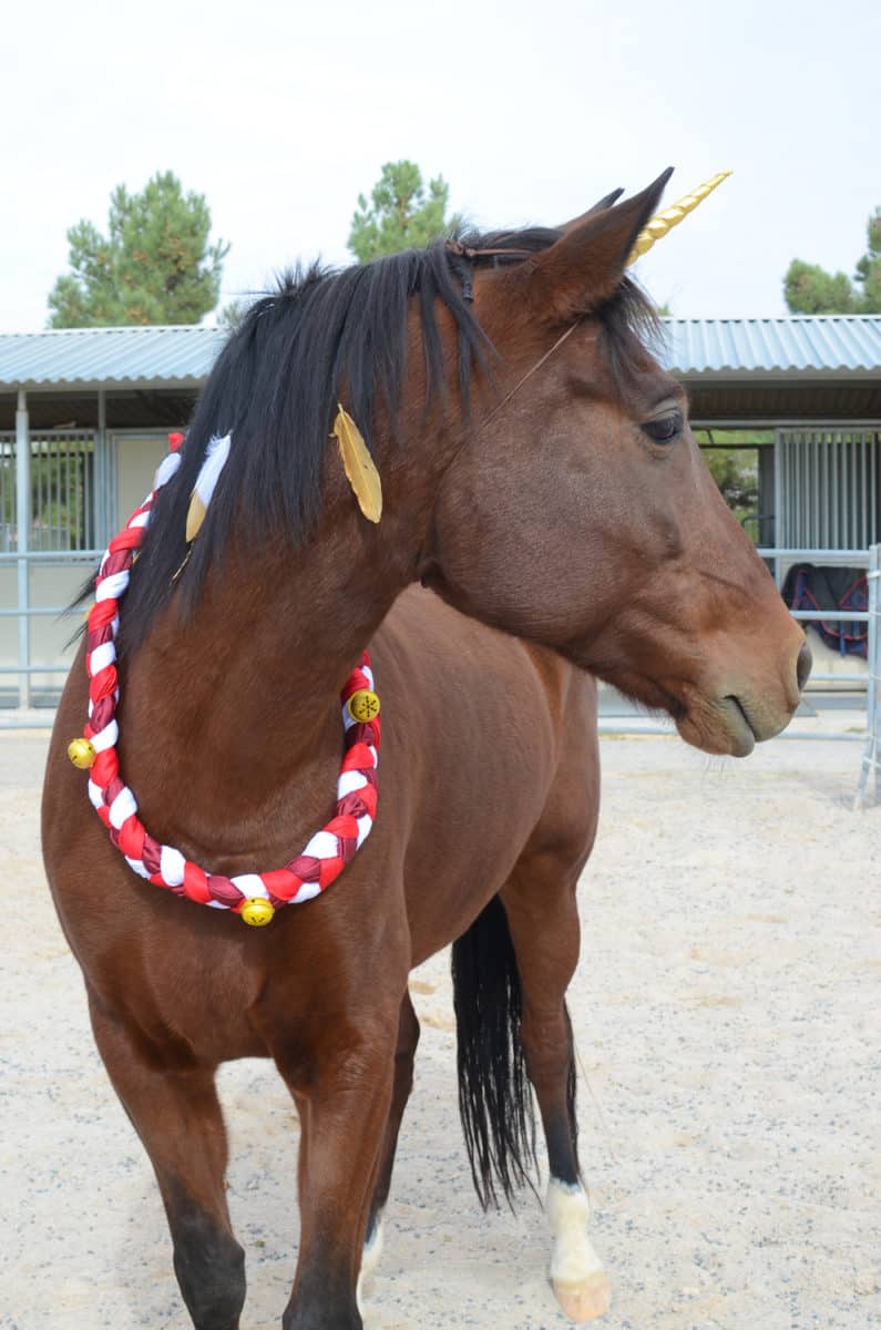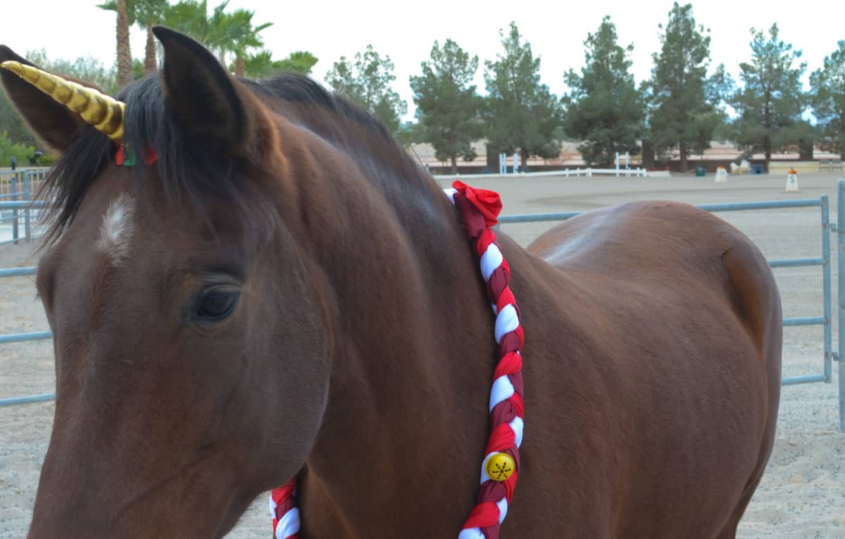Easily ties around your horse's neck with string.
