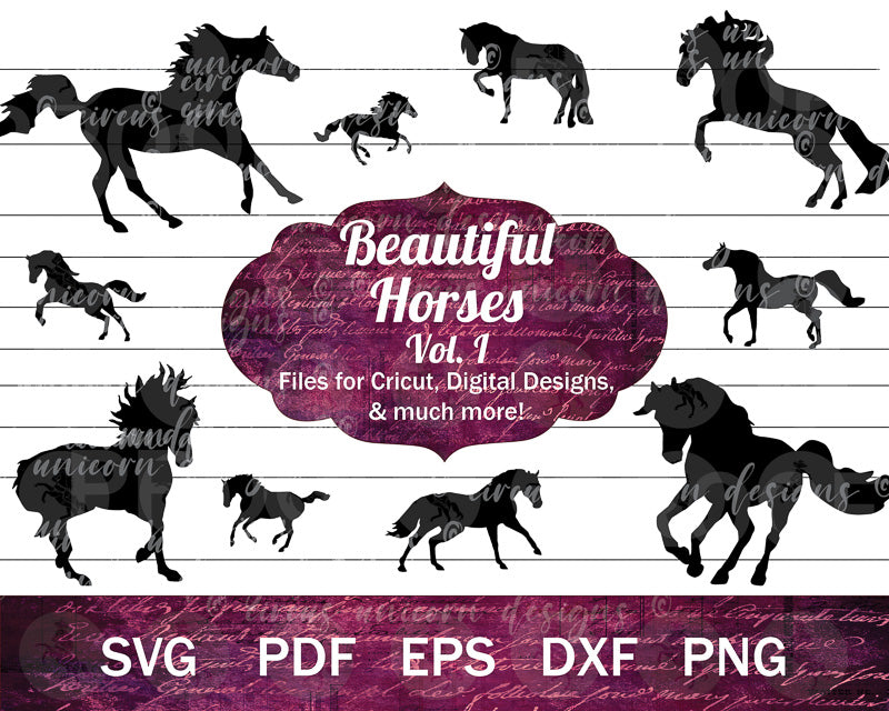 Use these horse clip art files for Cricut crafting, flyer designs, t-shirt designs, stencils, stickers, and so much more!
