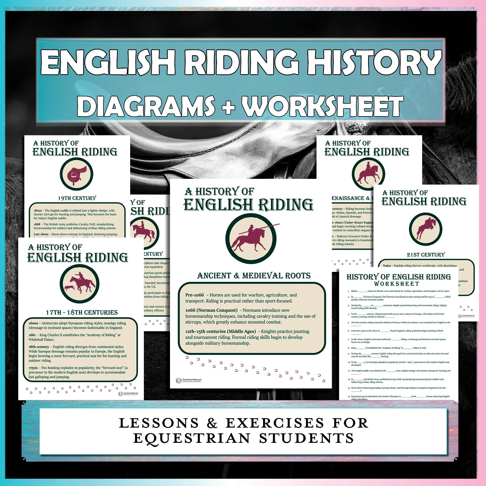 English Riding History Printable Bundle | Equestrian Worksheets & Diagrams | Learning Tools for Riding Students and Instructors