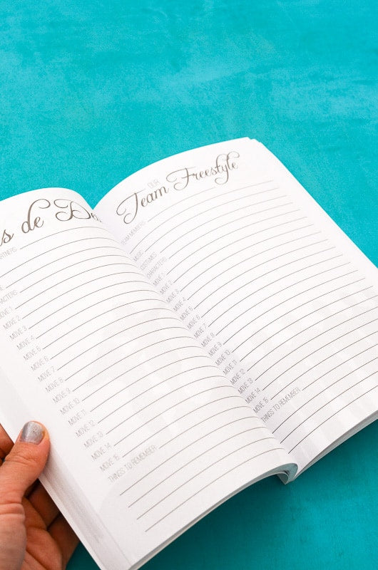 There are also pages for pas de deux, team freestyles (aren't we always forgetting which move comes next?), and drawing out your costume or unitard designs! Don't head off to practice without it!