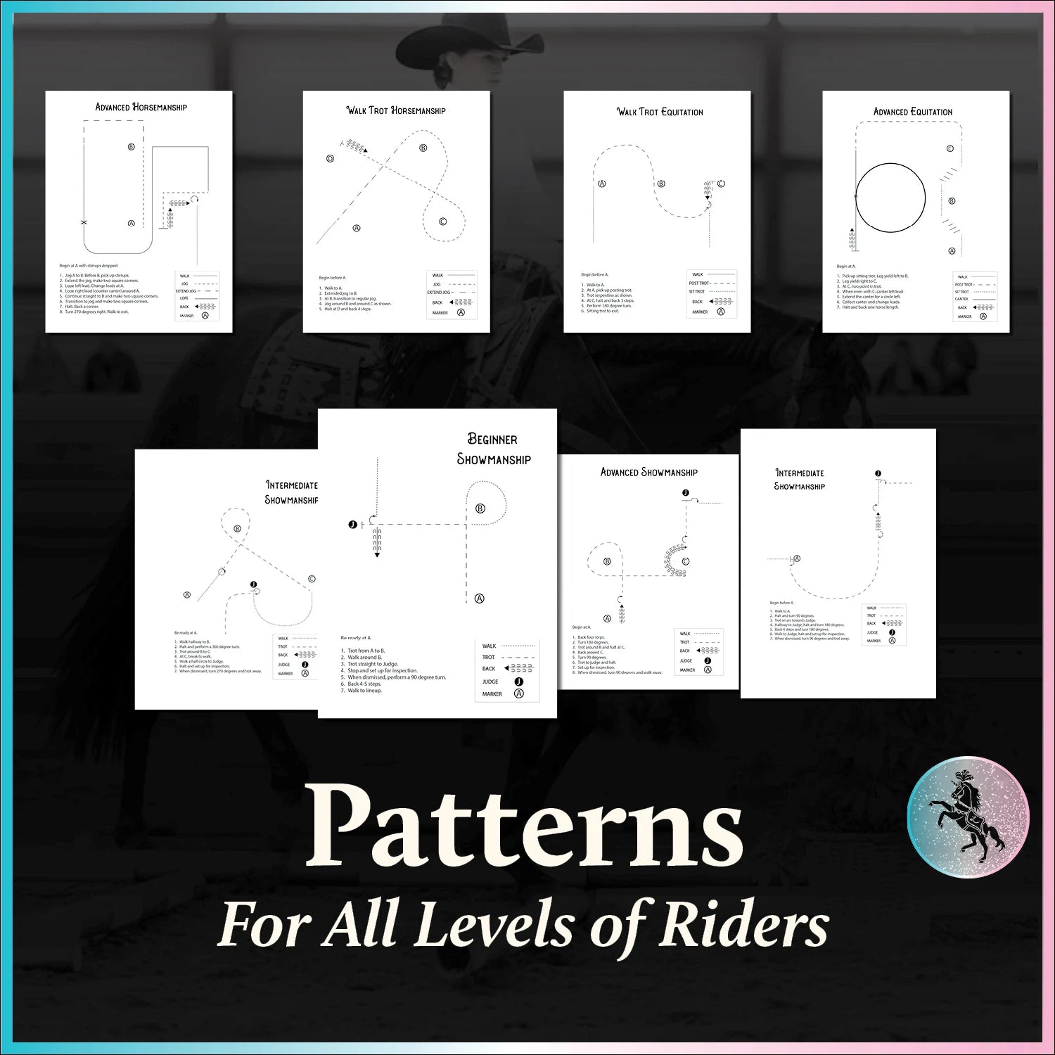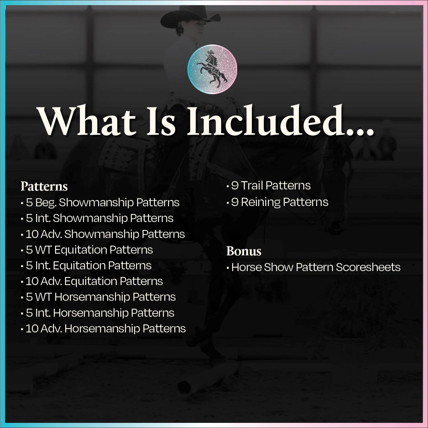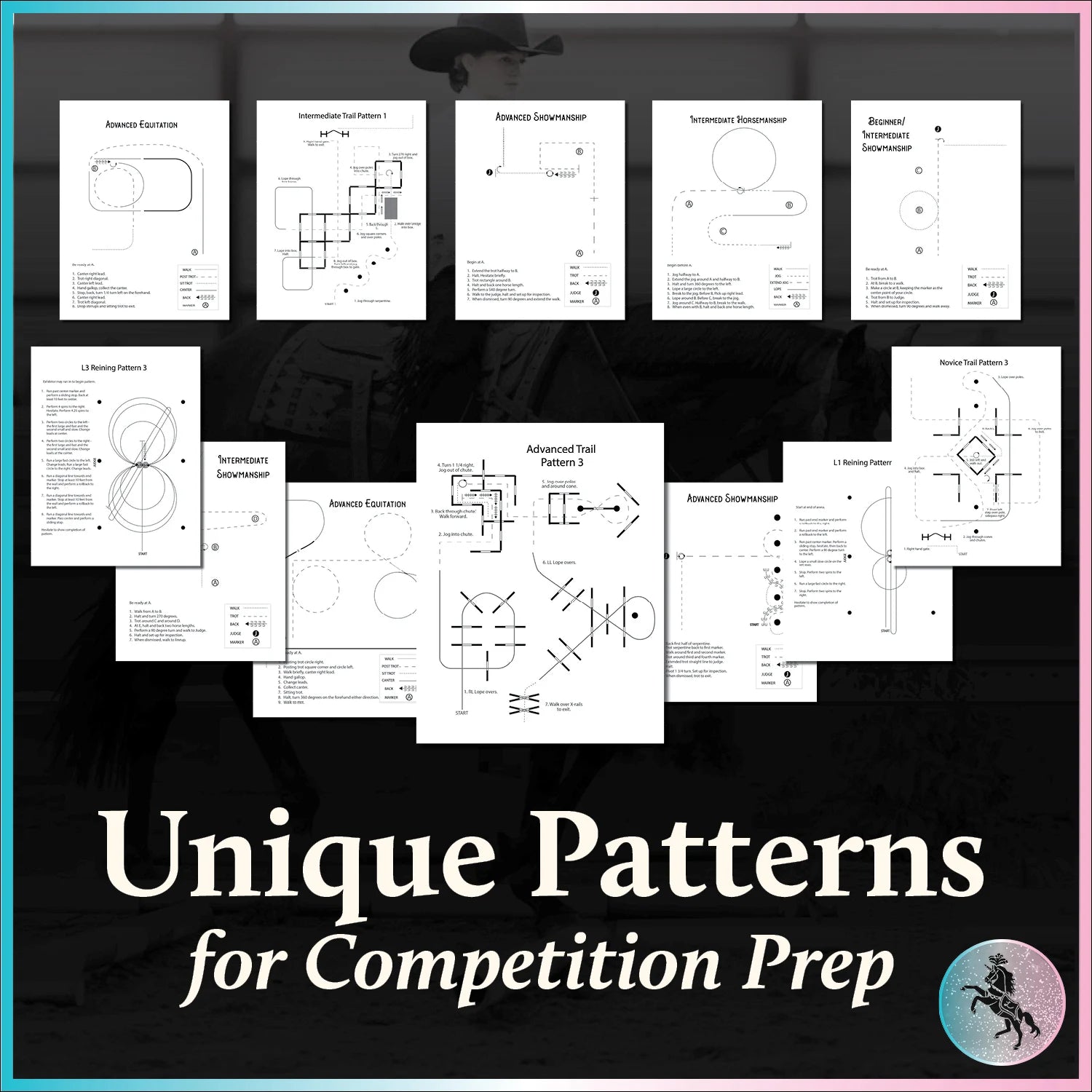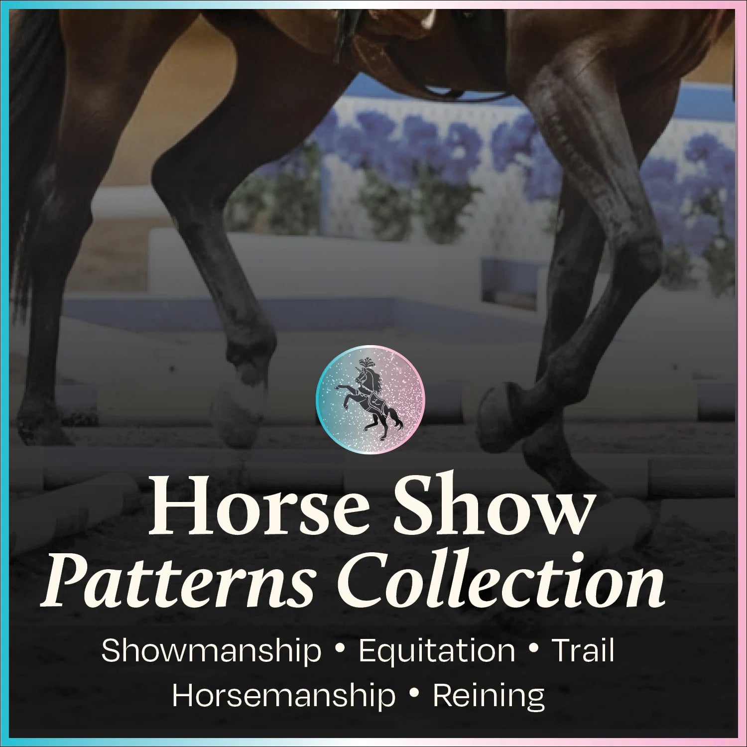 Take your showmanship and riding skills to the next level with this comprehensive Horse Show Patterns Collection. Designed to escalate in difficulty, this collection covers showmanship, English equitation, western horsemanship, trail, and reining—giving you and your horse the tools to refine precision, build confidence, and master the challenges of the show ring.