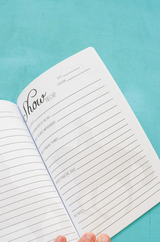 This dressage journal has 139 pages in total. It is perfect bound 6" x 9" and fits easily in your bag.