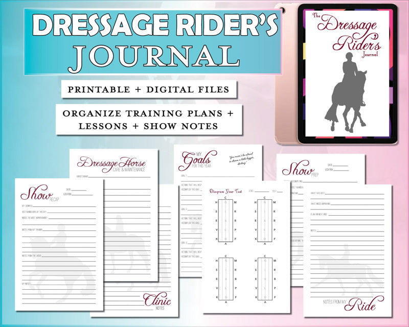 This is a PDF version of the Dressage Riders Journal, which includes both an interactive PDF for digital journaling as well as printable PDF files for printing and sharing with friends. PDF download will be available upon payment.