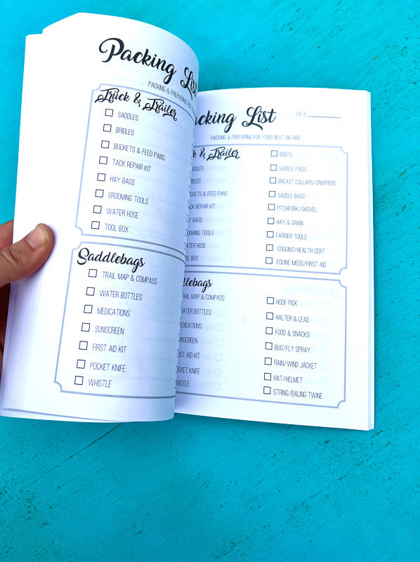 This equestrian journal was designed especially for endurance riders to log their training and adventures! This journal is a record book to track the speed, length, location, conditions, and happenings from your trail rides, and it also features packing lists for your next big ride as well as a section to set goals for you and your horse. Don't head out on the trail without it!