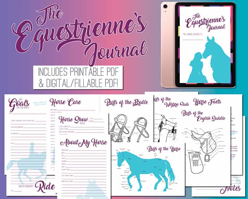 This journal was designed especially for young equestriennes to turn dreams into goals. With pages to help you outline your yearly and monthly goals and the steps needed to achieve them, you can easily track your progress and mark your milestones with your equine partner. This journal also features a log for each ride or lesson, tracking your horse's care, helpful diagrams for remembering parts of the horse and tack, and fun facts to help grow your equestrian knowledge! Don't head off to the barn without it! The Equestrienne's Journal - Digital/PDF
