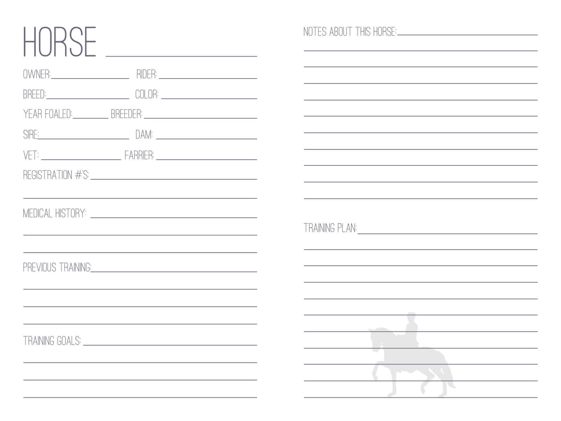 - Horse in Training Log (keep notes about horses, training plans, etc)