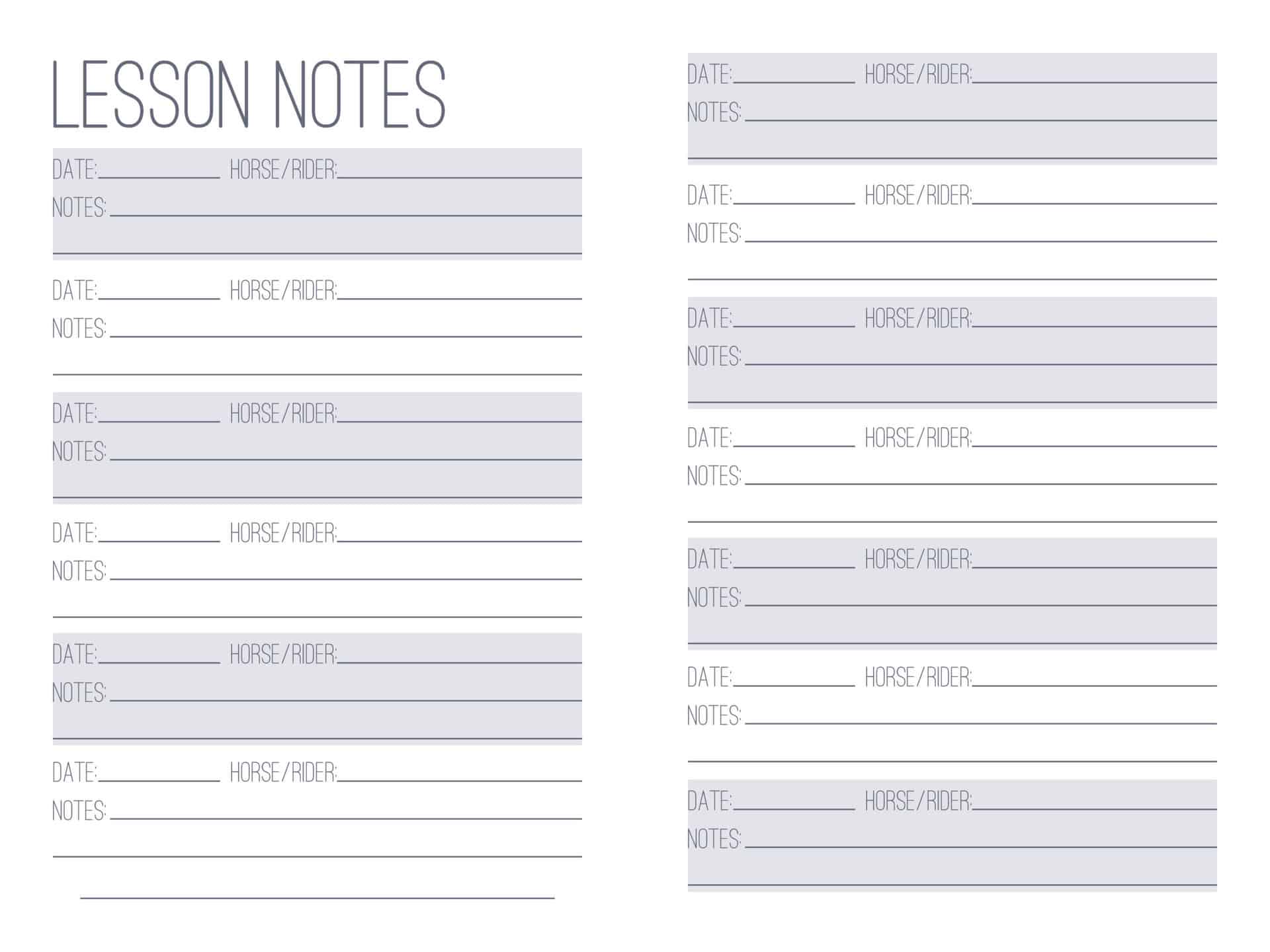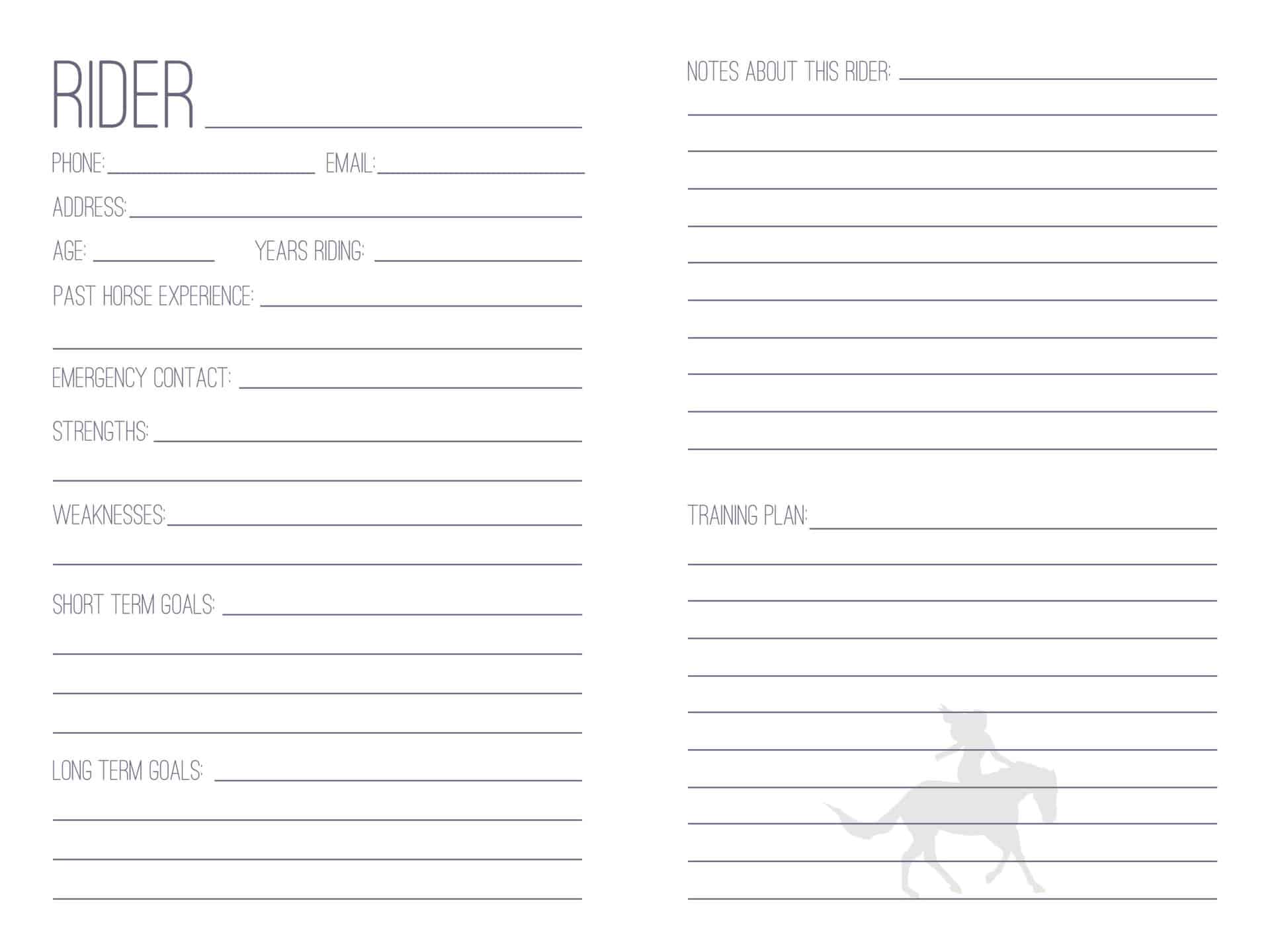 - Rider Log (keep notes about all of your students strengths, weaknesses, and goals)