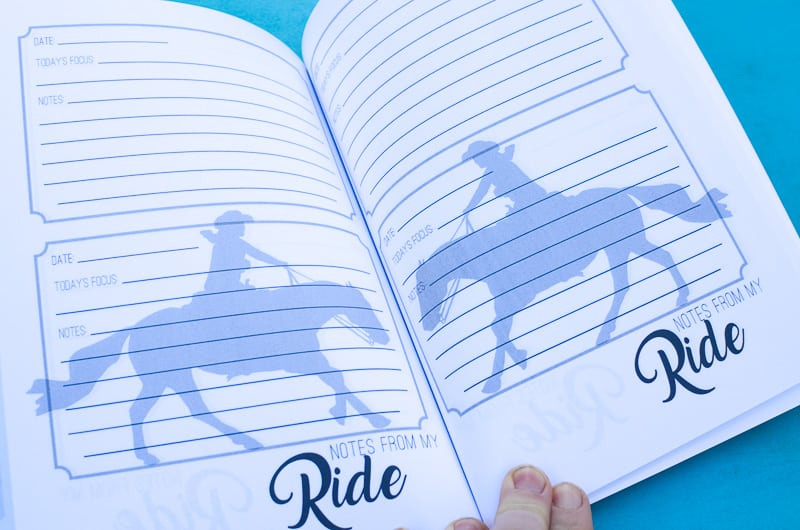 This journal is 6" x 9", perfect bound - 150 pages. It has plenty of space for at least one horse show season! The Reiner's Journal is also available in a digital version.