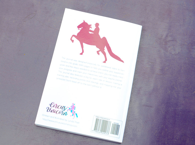 This journal was designed especially for saddle seat riders to turn dreams into goals. With pages to help you outline your equestrian goals and the steps needed to achieve them, you can easily track your progress and mark your milestones with your equine partner. This journal also features a log for each ride or lesson, making a training plan, recording points and placings, and mapping out your schedule! Don't head off to the barn without it!