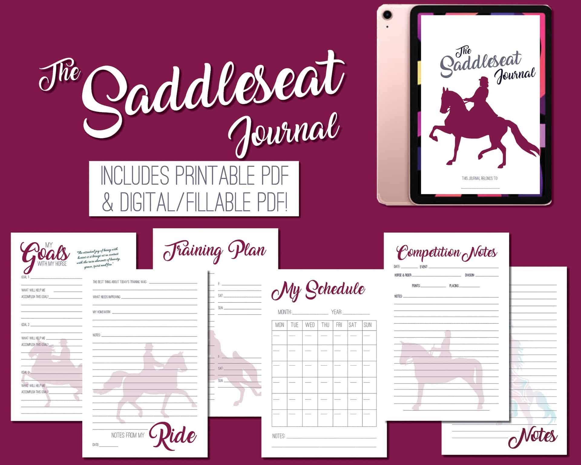 This journal was designed especially for saddleseat riders to turn dreams into goals. With pages to help you outline your equestrian goals and the steps needed to achieve them, you can easily track your progress and mark your milestones with your equine partner. This journal also features a log for each ride or lesson, making a training plan, recording points and placings, and mapping out your schedule! Don't head off to the barn without it!