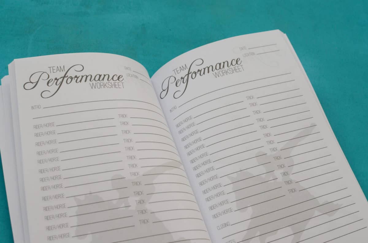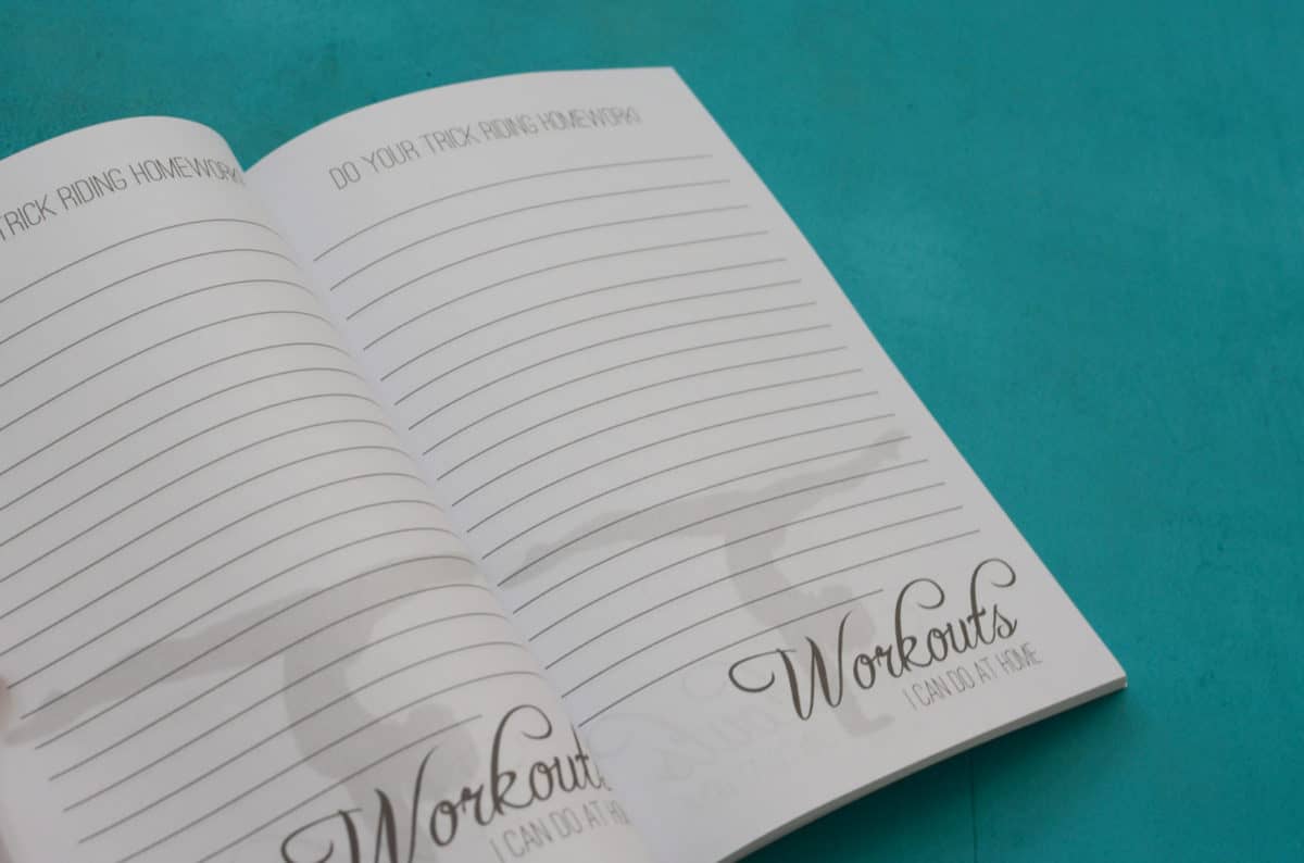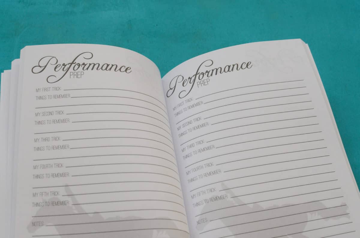 This trick riding journal features many fun pages to help you set, track and accomplish all your goals! By writing down your goals and the steps needed to accomplish them, you will put your plan into action! This journal also helps you plan out your team's performance trick by trick, track your horse's exercise schedule, make notes from your practices and clinics, draw out costume designs, and more! Don't head off to the barn without it!