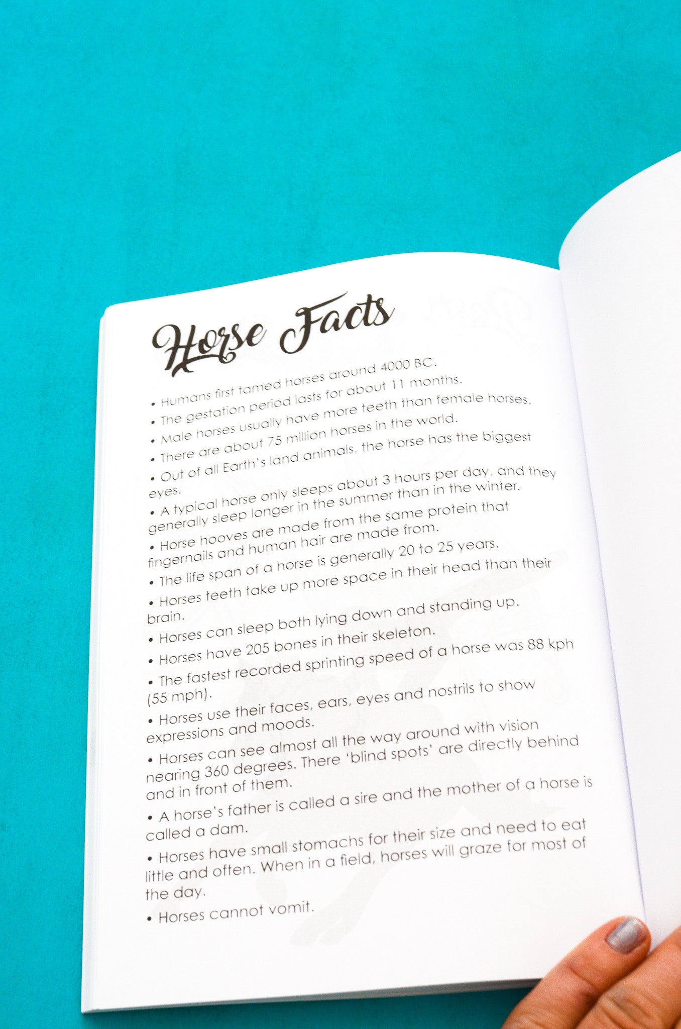 Ideal for ages 6-13. This journal has proved useful for pony clubs, 4-H clubs, and for many horse crazy girls. It also makes a great prize for horse shows!