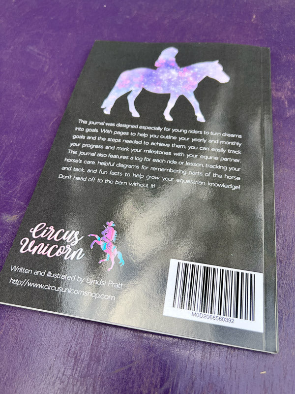 This journal was designed especially for young riders to turn dreams into goals. With pages to help you outline your yearly and monthly goals and the steps needed to achieve them, you can easily track your progress and mark your milestones with your equine partner. This journal also features a log for each ride or lesson, tracking your horse's care, helpful diagrams for remembering parts of the horse and tack, and fun facts to help grow your equestrian knowledge! Don't head off to the barn without it!